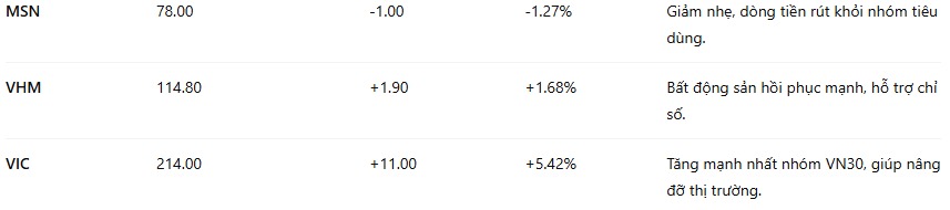 Ngược lại, nhóm bán lẻ và tiêu dùng (MWG, MSN) chịu áp lực điều chỉnh.